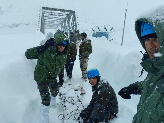 Лавината е ударила лагер на Организацията на граничните пътища в село Мана, което споделя границата с Тибет, съобщиха официални лица. Властите съобщиха, че спасителните операции продължават в екстремно време на фона на обилния снеговалеж.