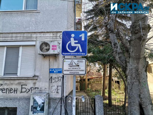 Знак за инвалидно паркомясто с престой до 3 часа стои неотстранен в Бургас и създава предпоставки за нарушения от страна на шофьорите – без реално да има логика в пътната маркировка.