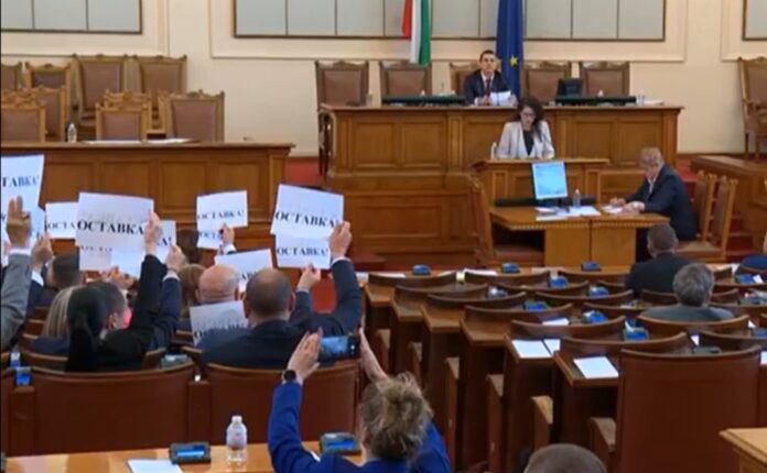 В началото на речта й в пленарната зала депутатите от ГЕРБ вдигнаха листове с надписи „Оставка“. Заместник-председателят на парламента Мирослав Иванов, който води заседанието, отправи молба да бъдат прибрани.