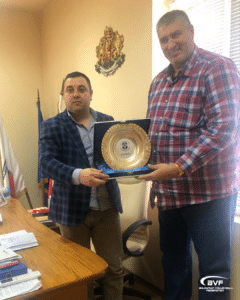 Кметът на Община Омуртаг инж. Ешреф Ешрефов посреща волейболната делегация в лицето на президента на БФВ Любо Ганев, вицепрезидента Давид Давидов, административния директор Станислав Николов, председателя на Комисията за Детско-юношески волейбол към БФВ Евгени Иванов и Николай Иванов, който е член на Комисията за ДЮВ и на Треньорската.