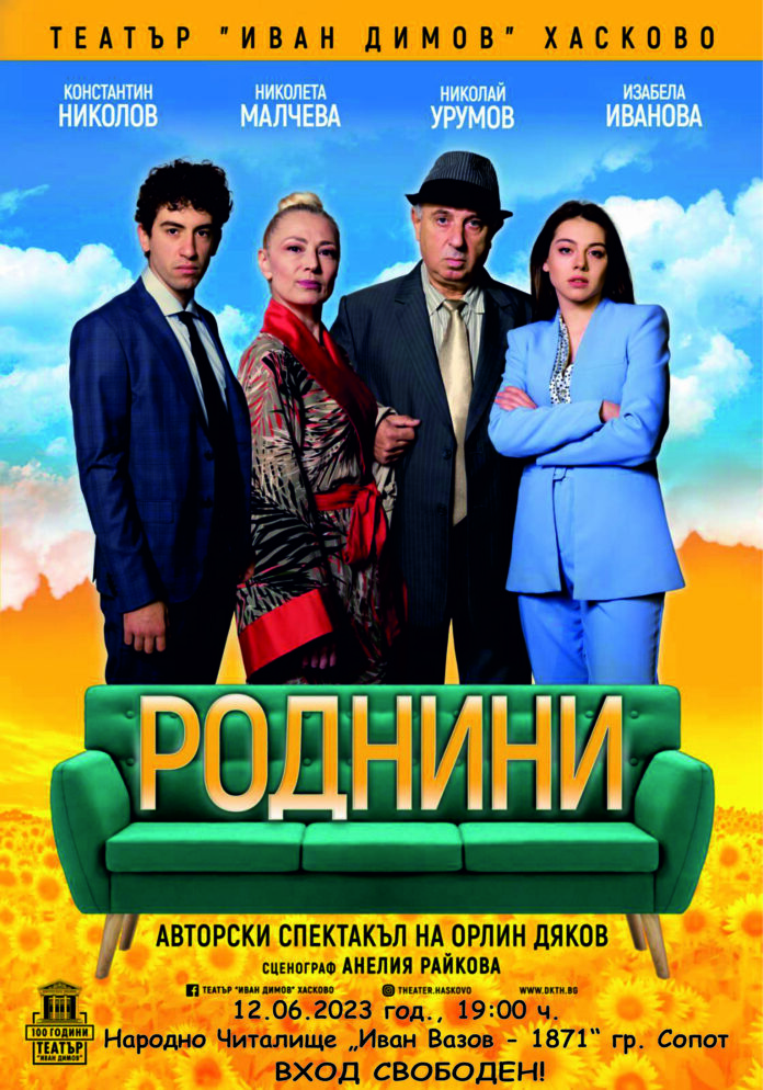Ще имате възможността да се насладите на авторския спектакъл на Орлин Дяков „Роднини“ на ДКТ „Иван Димов“–Хасково с участието на Николай Урумов.