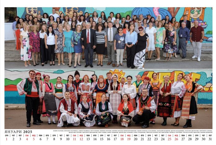 В столичното 128 СУ „Алберт Айнщайн“ посрещат юбилейната за училището 2025 г. с емблематичен календар. По идея на своя директор Юлиян Плачков учителите се преобразяват в народни носии и застават пред обектива за снимките в него. Това съобщиха от Министерството на образованието и науката /МОН/.