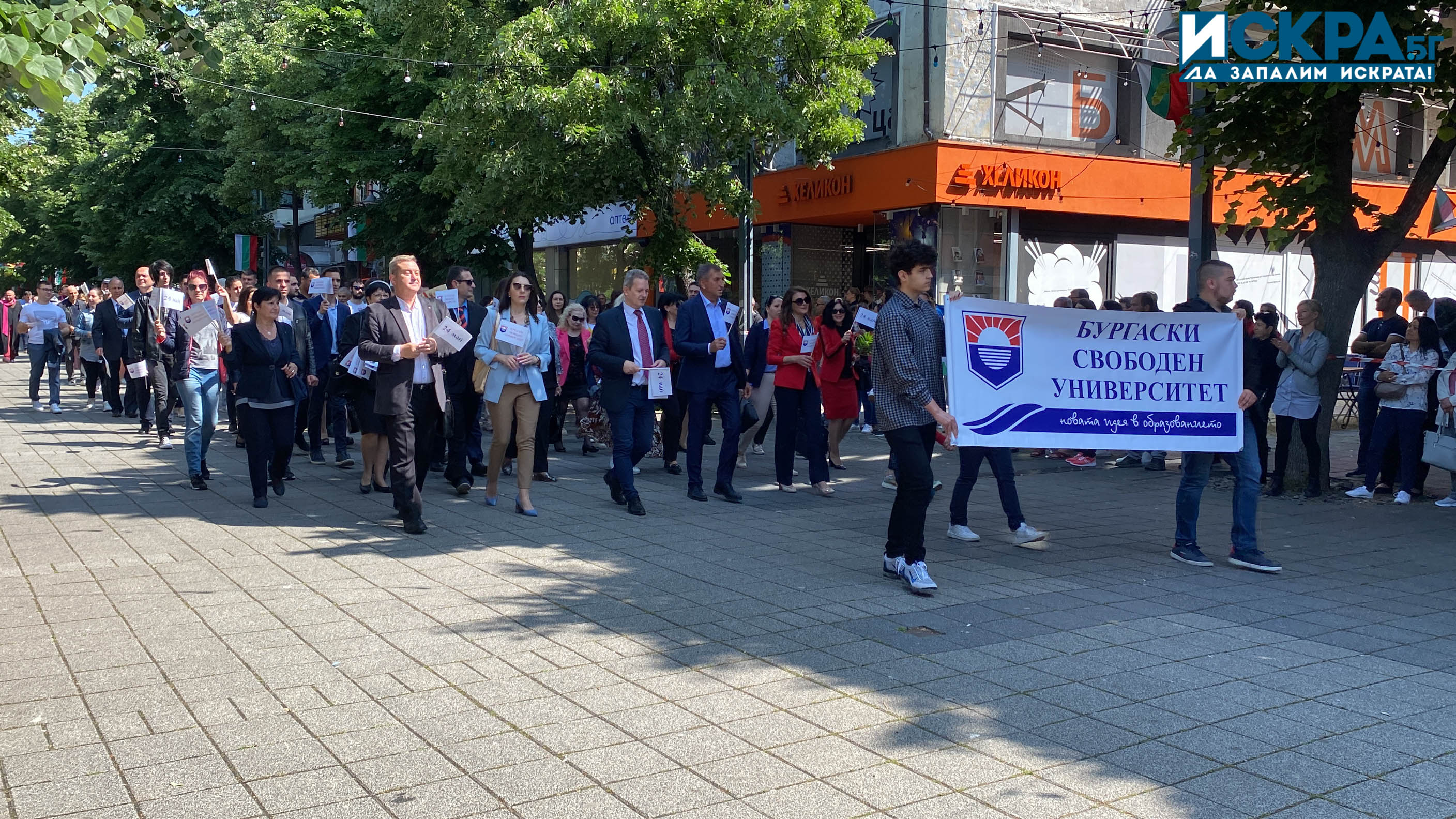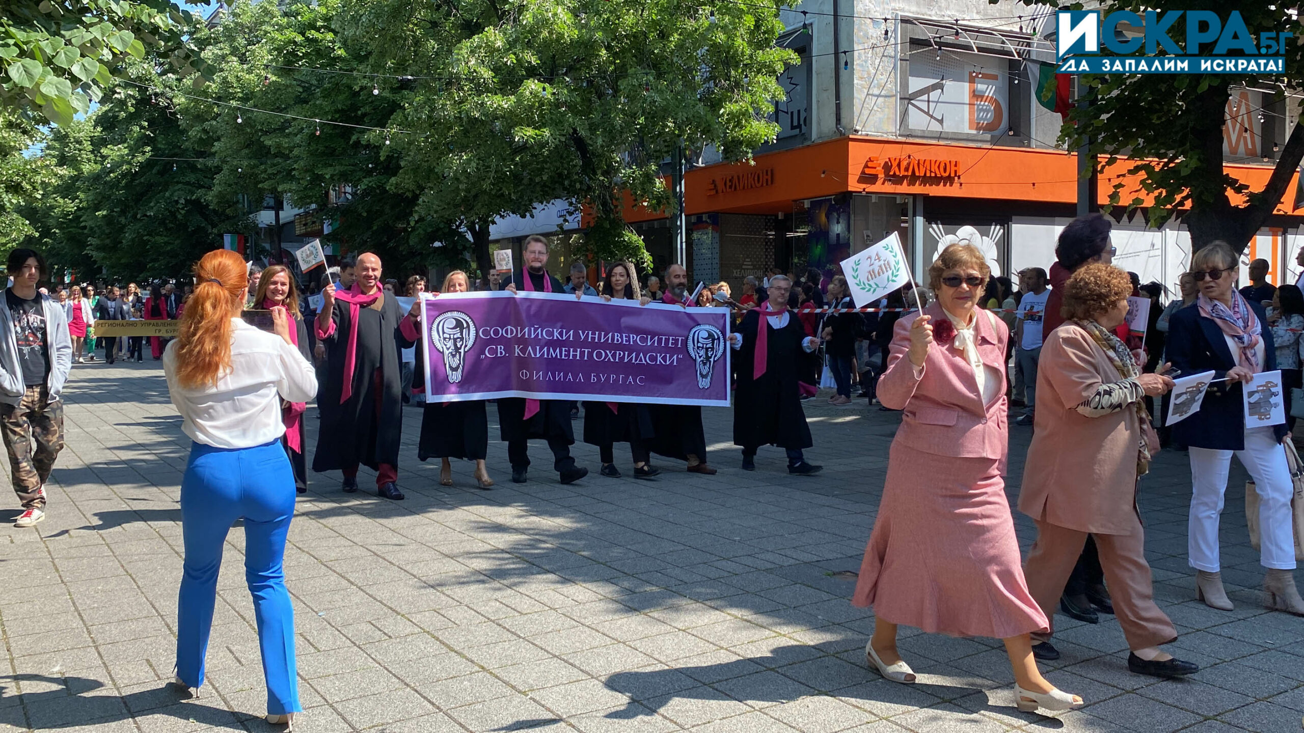 Около 10 000 деца, ученици, учители, културни и просветни дейци преминаха празнично през централната част на Бургас с шествие, посветено на Деня на светите братя Кирил и Методий, на българската азбука, просвета и култура, и на славянската книжовност – 24 май. Малко преди то да започне кметът Димитър Николов коментира пред журналисти: