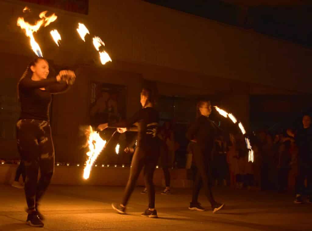Момичетата танцуваха с визуал пойове и светещи пойове, а кулминацията беше танцът с огън в края на спектакъла.