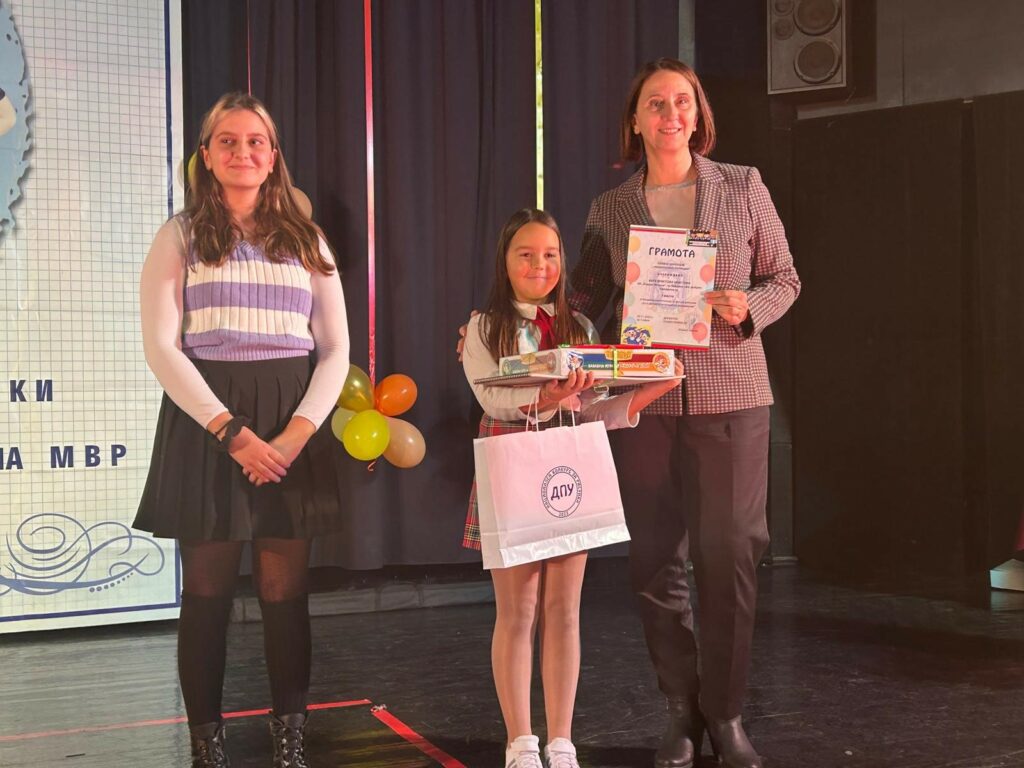 13 малки художници получиха награди за рисунки на тема „Аз и детското полицейско управление“ в конкурс, организиран по Национална програма на МВР в партньорство с МОН. Гост на церемонията, която се състоя в Националния дворец на децата, беше заместник-министърът на образованието и науката Мариета Георгиева. Тя връчи наградите на 8-годишната Вера Христова от Каварна и 11-годишната Рая Димитрова от Враца.