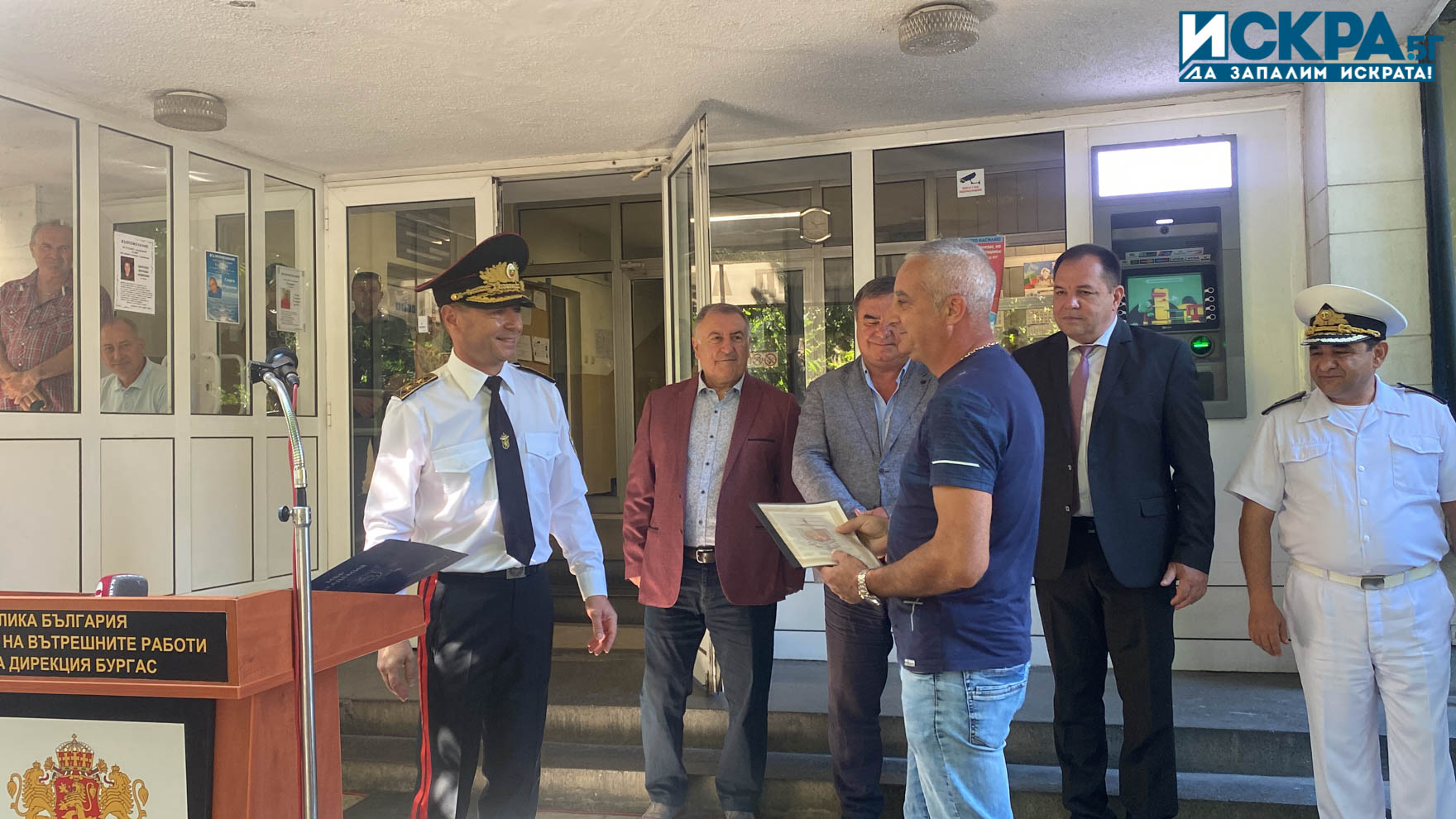 След поздравленията, старши комисар Калоян Калоянов награди с почетен знак втора степен комисар Неделчо Рачев, началник на сектор „Охранителна полиция“ към ОДМВР-Бургас и главен инспектор Николай Ангелов – началник на сектор „Престъпления, свързани с наркотични вещества и детска престъпност“ към отдел „Криминална полиция“ към ОДМВР-Бургас. С грамота от министъра на МВР бе наградена и Цветелина Рандева – старши експерт Дирекция „Пресцентър и връзки с обществеността“. Старши комисар Калоянов награди с почетна грамота и двама служители, които посрещат и изпращат гражданите в ОДМВР-Бургас – Петър Велев и Иван Братанов.