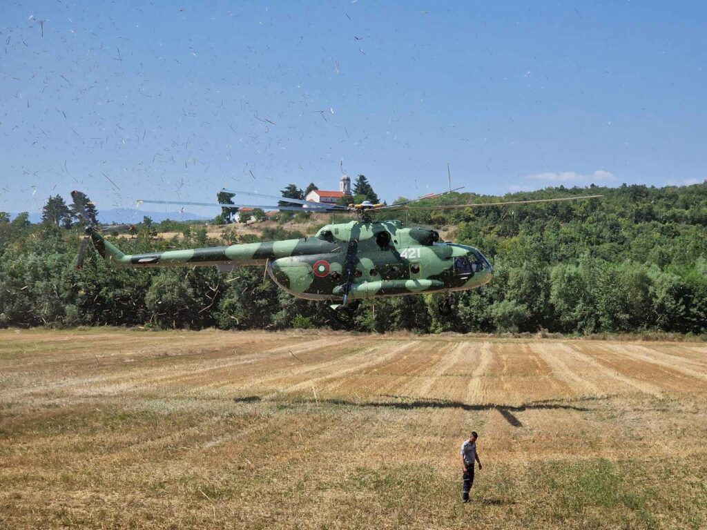 Малко след 07:00 часа тази сутрин от авиобазата е излетял хеликоптер „AS 532 AL Cougar“, който първоначално е разузнал местността, релефа, метеорологичните и въздушните условия в района на пожара. След 10:00 часа в гасенето от въздуха се е включил и хеликоптер „Ми-17“.