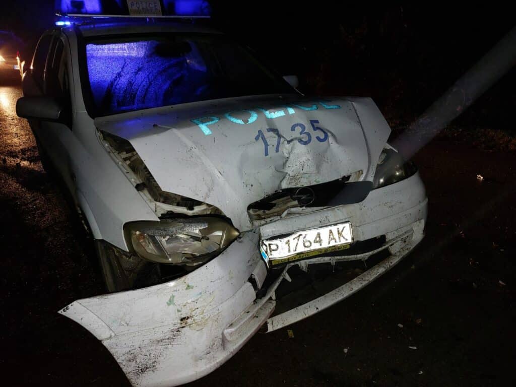 В този момент полицейският автомобил „Опел Астра“, който е предприел преследване, се е ударил в задната част на катастрофирала кола, която е била и без светлини. За щастие при инцидента няма сериозно пострадали хора.