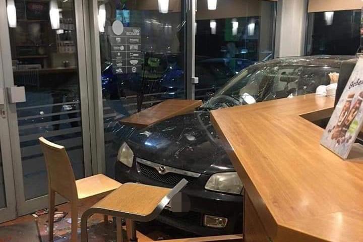 Младият водач е преминал покрай колонките за зареждане и се е врязал в сградата на бензиностанцията с автомобила си. Счупени са били два стъклопакета и част от бар плот.