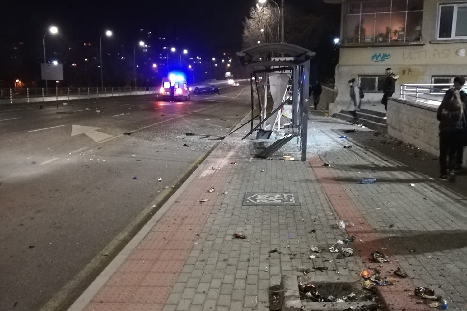 Шофьорът е изгубил контрол над автомобила си марка „BMW“ и се е врязал в автобусна спирка. След това колата се е обърнала по таван на плътното платно.