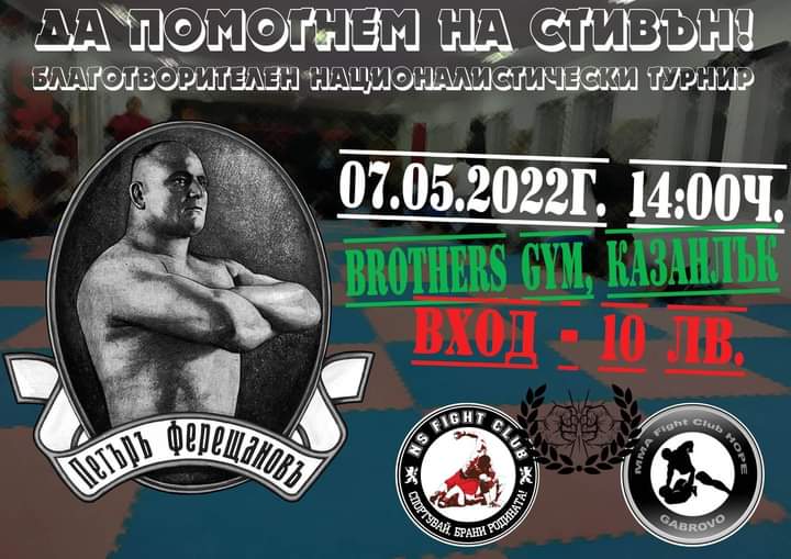 Три бойни клуба от Габрово /MMA Fight „Hope“/, София /“NS“ Fight Club/ и Казанлък /“Brothers gym“/ обединяват общи усилия, за да подкрепят каузата в събиране на пари за лечението на 14-годишния Стивън Бориславов, който се бори със Сарком на Юинг.