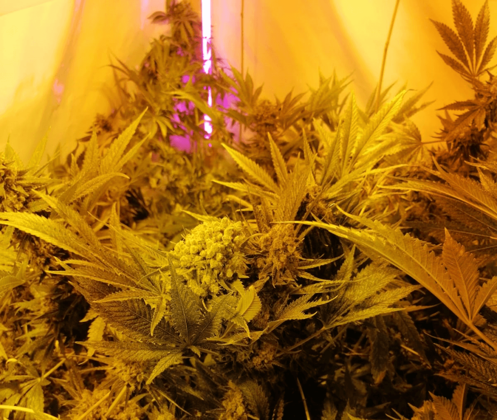При специализирана операция на адрес, ползван от мъжа под наем, криминалисти са открили оранжерия със засадени 585 растения в напреднал етап на развитие. Иззети са въздуховоди, поливна система, обезмирисители, лампи, суха тревна маса и везни.