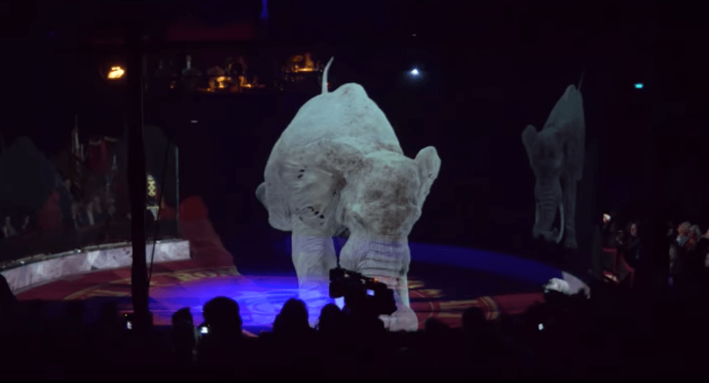Бернард Пол, основател и директор на цирк „Ронкали”, бързо предложил алтернативно решение. То не само не ощетило качеството на спектакъла, а напротив – направил го първия по рода си. С помощта на 11 лазерни проектора на сцената се изобразяват 3D холограми на слонове, коне и дори златна рибка, които могат да бъдат наблюдавани в цялата си прелест от всяко едно място в залата. Новото оборудване струва на цирка повече от 450 000 евро.