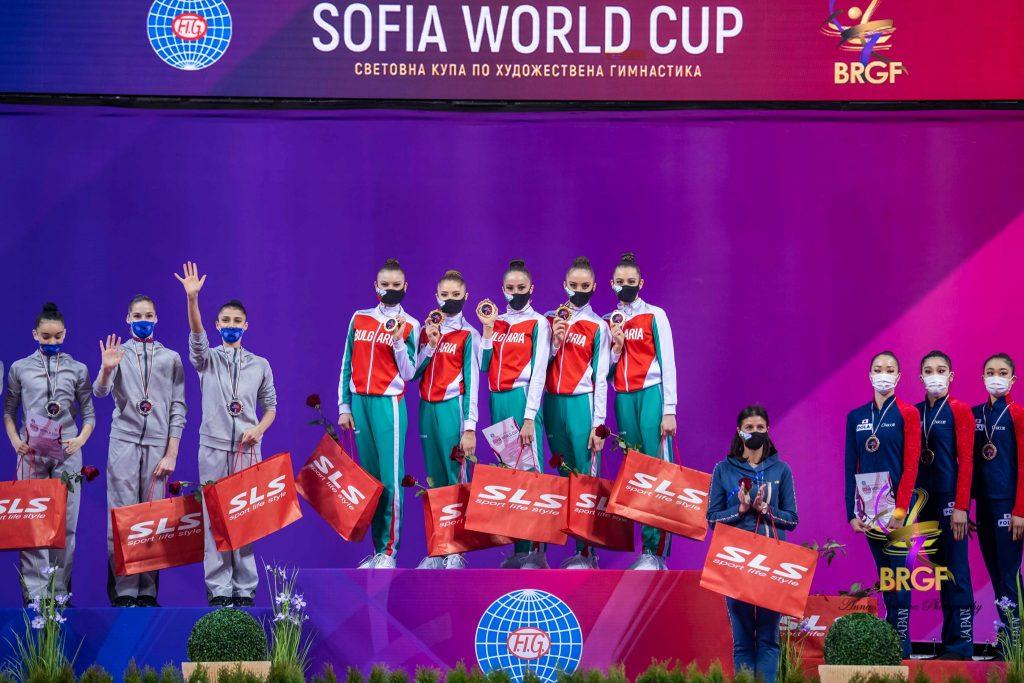 Българските грации извоюяваха общо 9 медала за страната ни от Световната купа по художествена гимнастика в София. Това стана, след като златните ни момичета спечелиха първото място и във финала на обръчи и бухалки. По този начин възпитаничките на Весела Димитрова – Симона Дянкова, Мадлен Радуканова, Лаура Траатс, Ерика Зафирова и Стефани Кирякова, приключват участието си в първия важен турнир за тази година на олимпийските игри с пълен златен комплект.