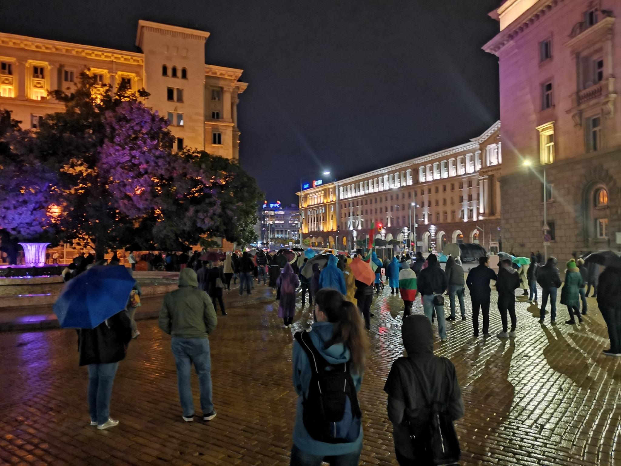 И тази вечер протестиращите започнаха да се събират около 19:00 часа в Триъгълника на властта. Исканията им остават непроменени, като основните им са за оставка на правителството и главния прокурор Иван Гешев, предсрочен вот с машинно, дистанционно и електронно гласуване.