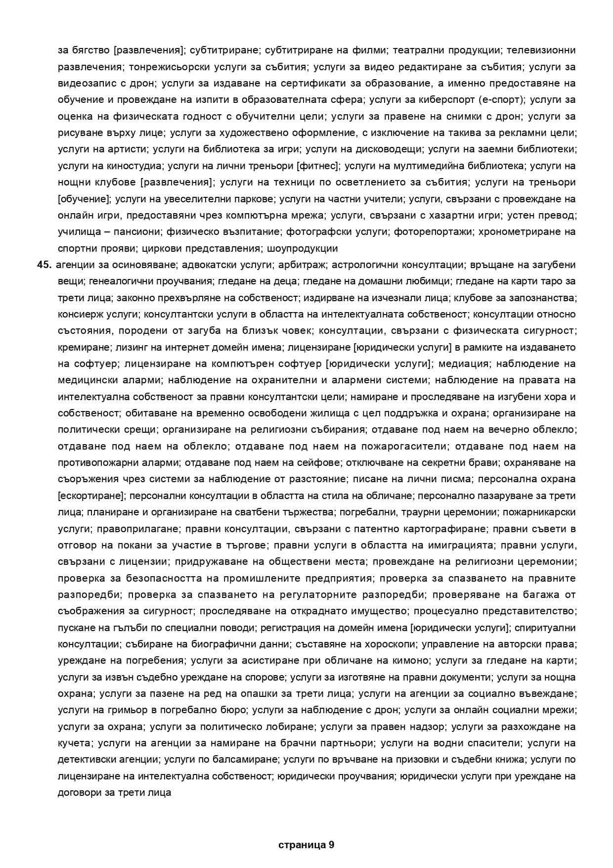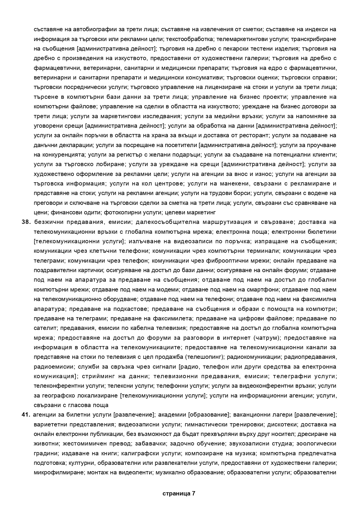 Нека обърнем внимание на списъка от Ницската класификация в заявката за регистрация. Той включва множество стоки и услуги като: печатни материали, дрехи, услуги, свързани с търговски сделки, реклама и маркетинг, телекомуникации, медии, обучение, адвокатски услуги и още много други. Пълният списък може да намерите в регистъра на ПВ. На пръв поглед човек би решил, че марката не може да се използва в печатни издания или в медиите. Това обаче далеч не е така. Ако не притежавате онлайн медия, която се казва Костя Копейкин, или ако не сте кръстили така рекламната си агенция, или не продавате телекомуникационни услуги под тази марка, не нарушавате правата на заявителя Деян Николов.