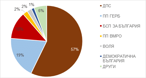 На изборите за Европейски парламент през 2019 г. повече от половината от гласовете в секциите, в които е отчетен риск от контролиран и купен вот, отиват за ДПС /57%/. Следват ПП ГЕРБ с 19% и БСП с 12%.