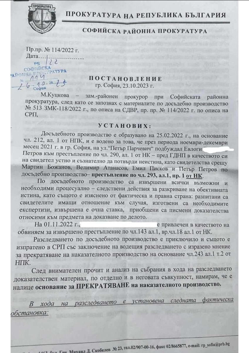 Днес от Фонда представят на вниманието прелюбопитни подробности от производство на Софийска районна прокуратура срещу човек в остър личен конфликт с Нотариуса.