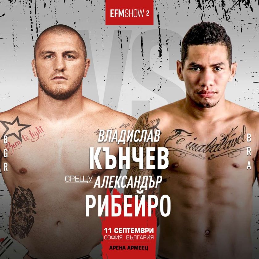 Александър Рибейро е новият противник на един от най-добрите ММА бойци у нас Владислав Кънчев за предстоящата гала на „EFM Show 2“. Тя ще се проведе на 11 септември в София.