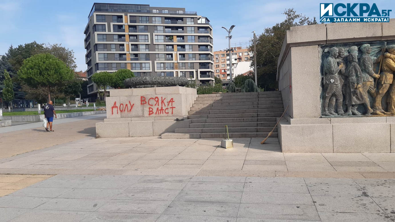 Паметникът на Съветската армия в Бургас, по-известен като „Альошата“, осъмна изрисуван. Това съобщиха читатели за Искра.бг.