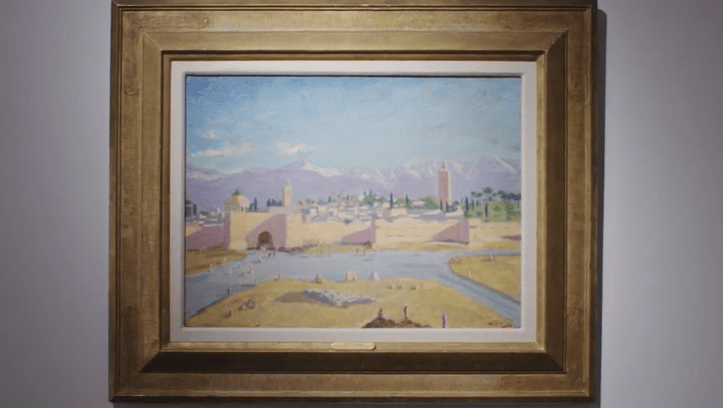 Втори пейзаж на Чърчил, “Сцена в Маракеш”, нарисуван при първото му посещение в Мароко през 1935 г., преди това продаден за 1,5 млн. паунда. Бившият партньор на Джоли Брад Пит е известен като запален колекционер на изкуство и по време на брака си двойката е купила някои забележителни произведения, включително някои от Банкси и Нео Раух.