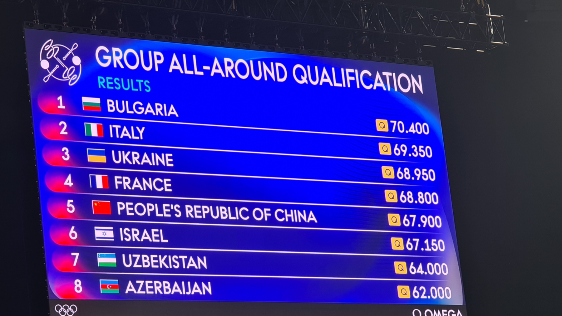 С общо 70.400 точки, България зае първото място в квалификациите, следвани от Италия с 69.350 точки и Украйна с 68.950 точки. В топ 8, които продължават на финала, се наредиха също Франция, Китай, Израел, Узбекистан и Азербайджан.