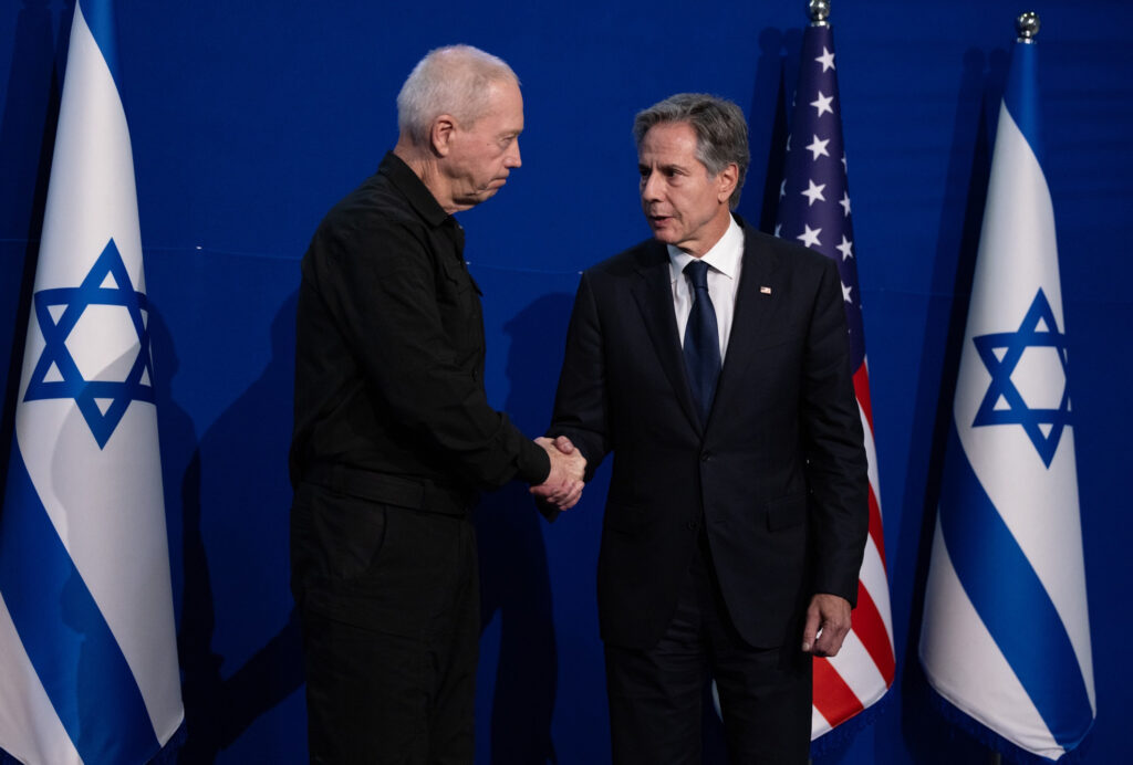 Държавният секретар на САЩ Антъни Блинкен се ръкува с израелския министър на отбраната Йоав Галант. Снимка: Wikimedia Commons