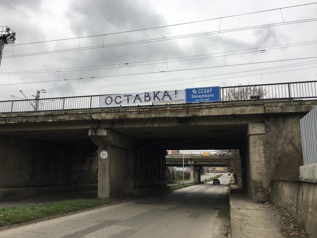 Антиправителствена демонстрация в Стара Загора. Активисти от „Отровното трио и гражданите“ в града откриха слабост в направената в коледната украса и решиха да я допълнят с поставянето на банери „ОСТАВКА“ на три надлеза.