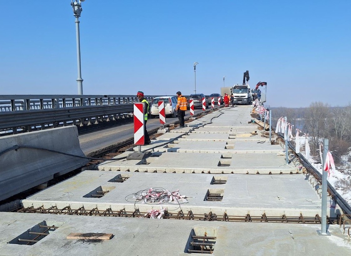 В момента основният ремонт на моста в 413-метровия участък в платното в посока Румъния продължава по утвърдения график. Строителните дейности се извършват без да се спира движението, като се организират и извършват така, че превозните средства да преминават поетапно двупосочно в платното, в което не се работи.