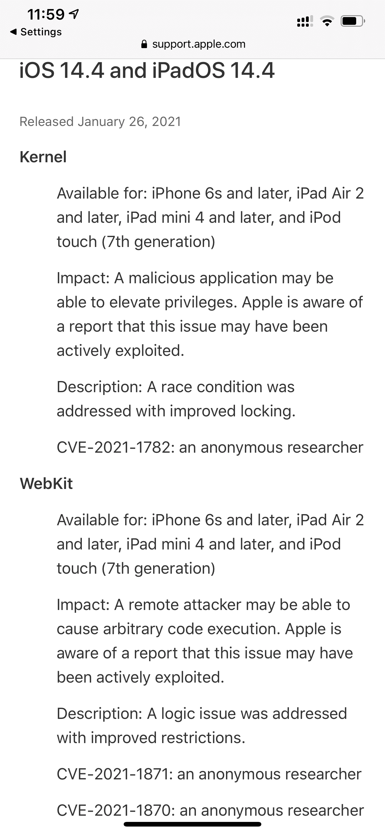 Щом компания от такава величина акцентира на дупките в сигурността на iOS, едва ли става въпрос за стандартен ъпдейт „оправихме няколко бъга и грешки“ и силно препоръчваме да инсталирате iOS 14.4 веднага.