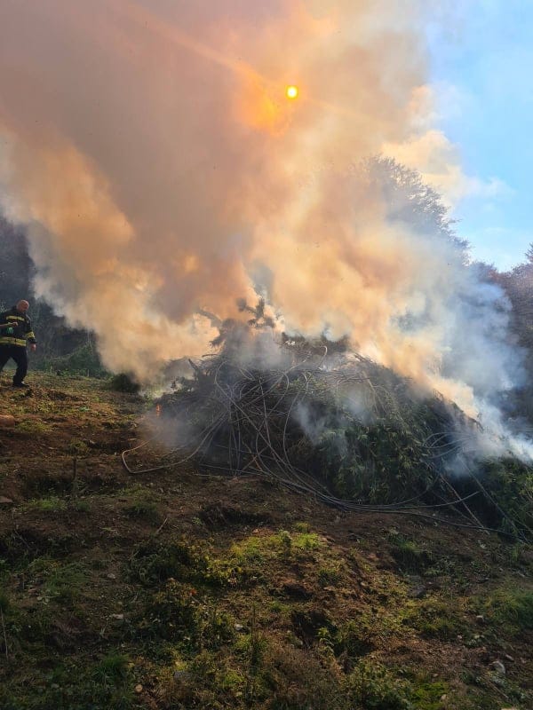 След изкореняване и документиране на установеното в нивата и в присъствието на комисия по унищожаването и екип на РСПБЗН, реколтата от канабис е изгорена на място на място.