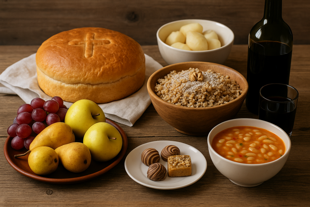 Храната на този ден не е просто подредена маса – тя е молитва в действие. Житото, хлябът и виното са духовни символи, а споделянето на храната е акт на милосърдие. Част от приготвеното се носи на гробищата, където близките почистват гробовете, палят свещи, прекадяват с тамян и поливат с вино. Друга част се раздава на съседи и на нуждаещи се – за спасение на душите и благословия за живите.