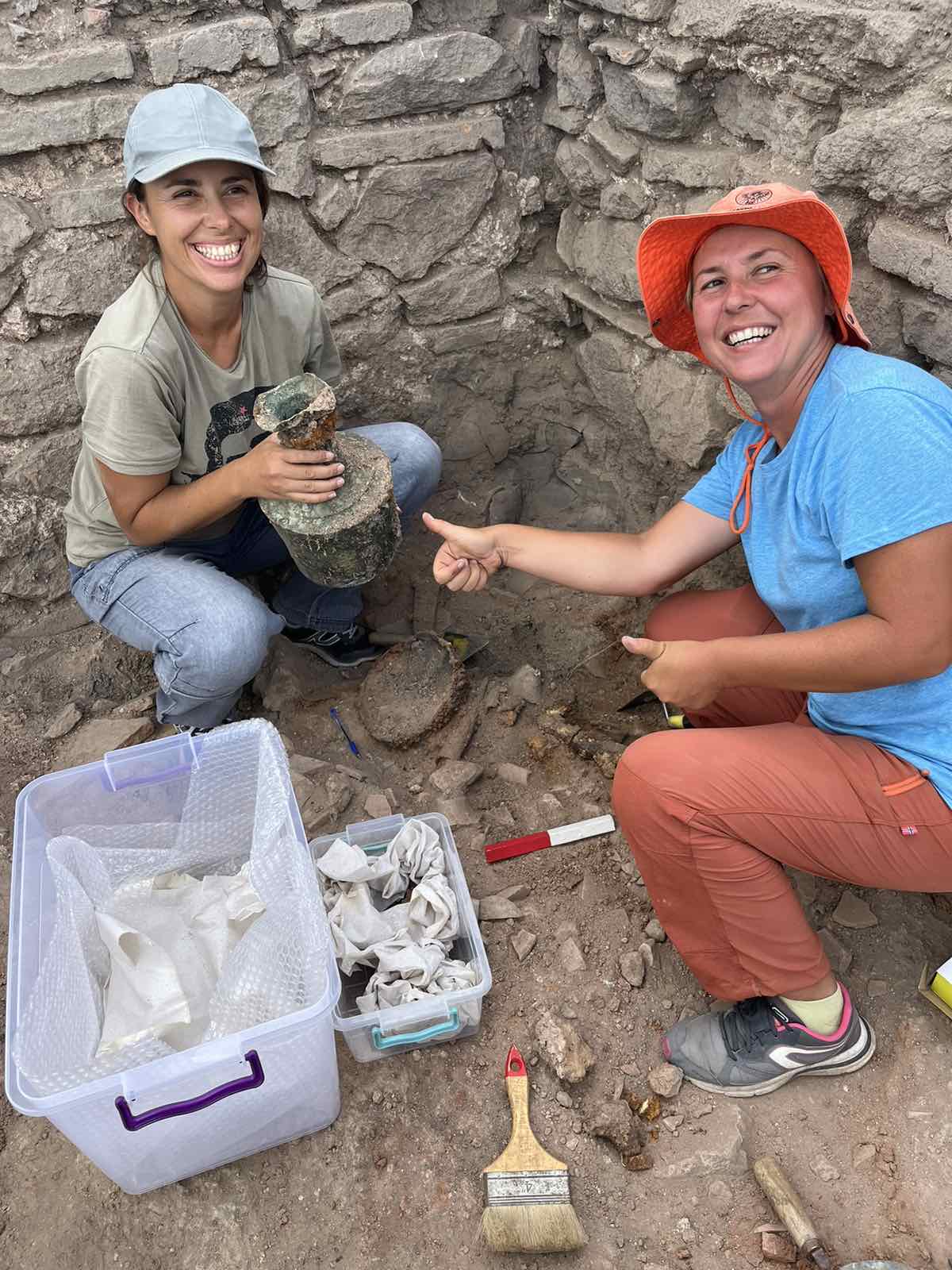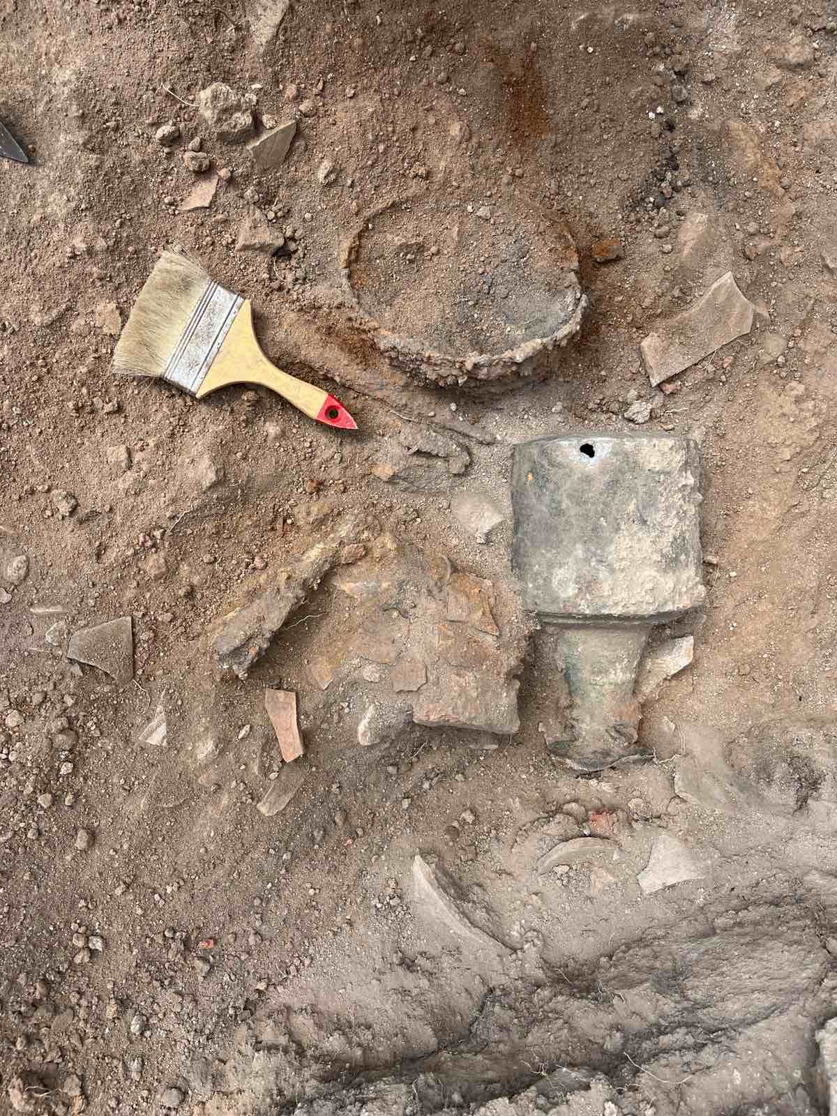 „Бронзова кана в опожарен пласт от късната античност! Винаги е особено вълнението и радостта при рядка находка! Очакваме с нетърпение да бъде реставрирана и експонирана в музея!!!“