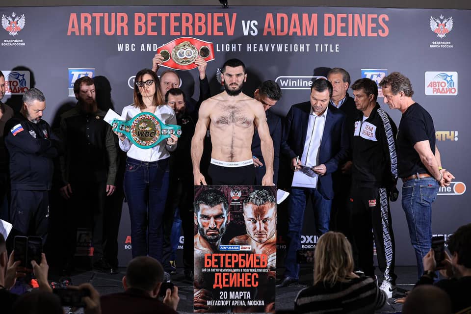 На световния шампиона на WBC и IBF в лека тежка категория Артур Бетербиев му бяха необходими 10 рунда, за да успее да победи претендента Адам Дейнес. Двубоят се състоя в зала „Мегаспорт“ в Москва.