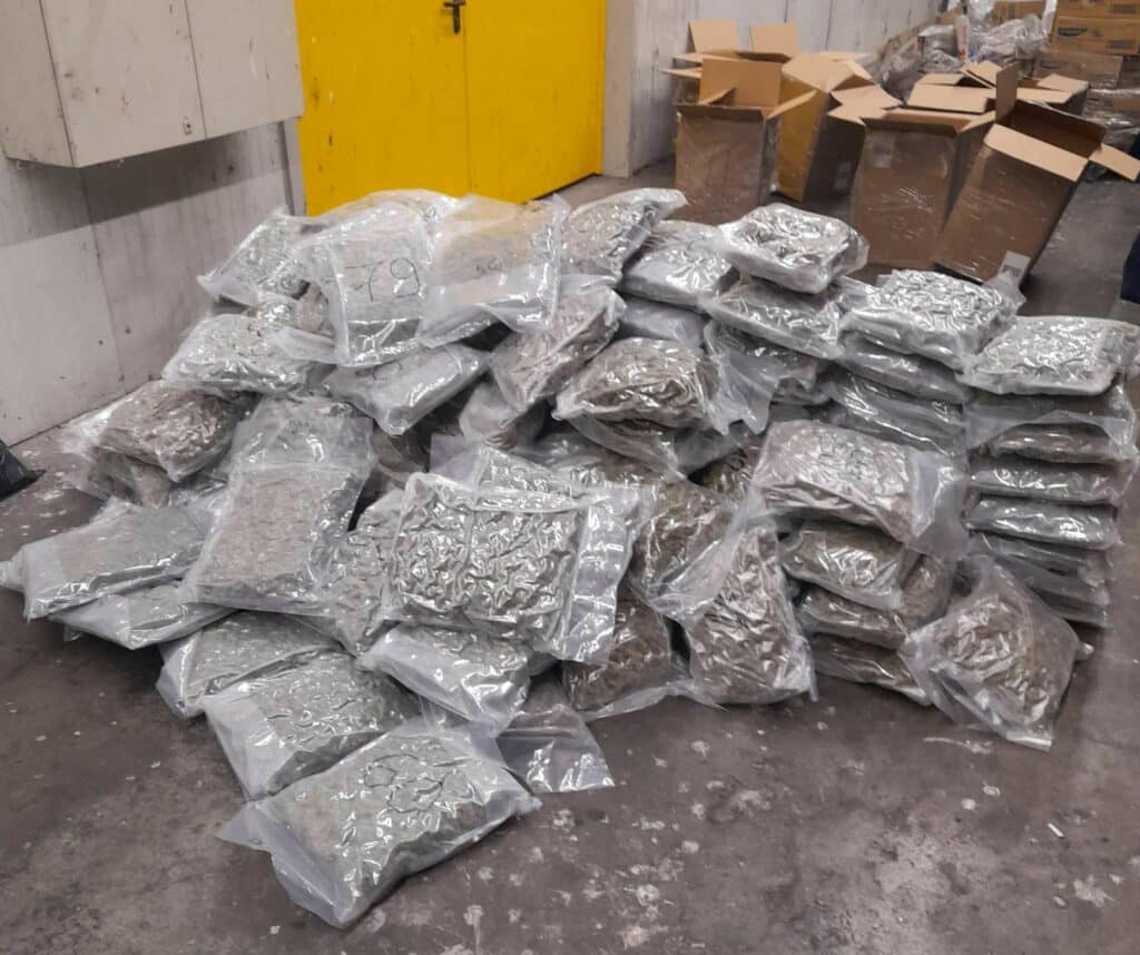 В товарното помещение зад палетите с декларираната стока митническите служители са открили пет сака и девет кашона, съдържащи общо 135 полиетиленови плика със суха тревиста маса. Направен е полеви наркотест, който показва реакция на марихуана. Наркотичното вещество е с общо бруто тегло 145.11 кг на стойност 2 321 760 лева. При личен преглед на чантата на водача са открити и 2.40 грама хашиш на стойност 90 лева.