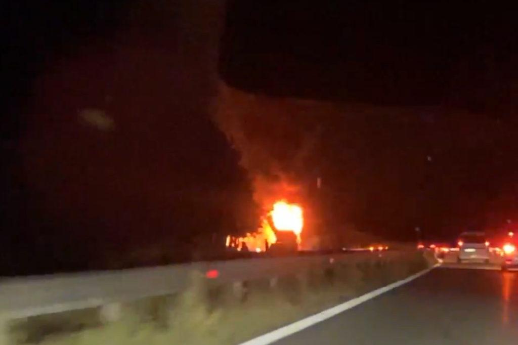 Автобус с турски туристи изгоря на магистрала „Тракия“