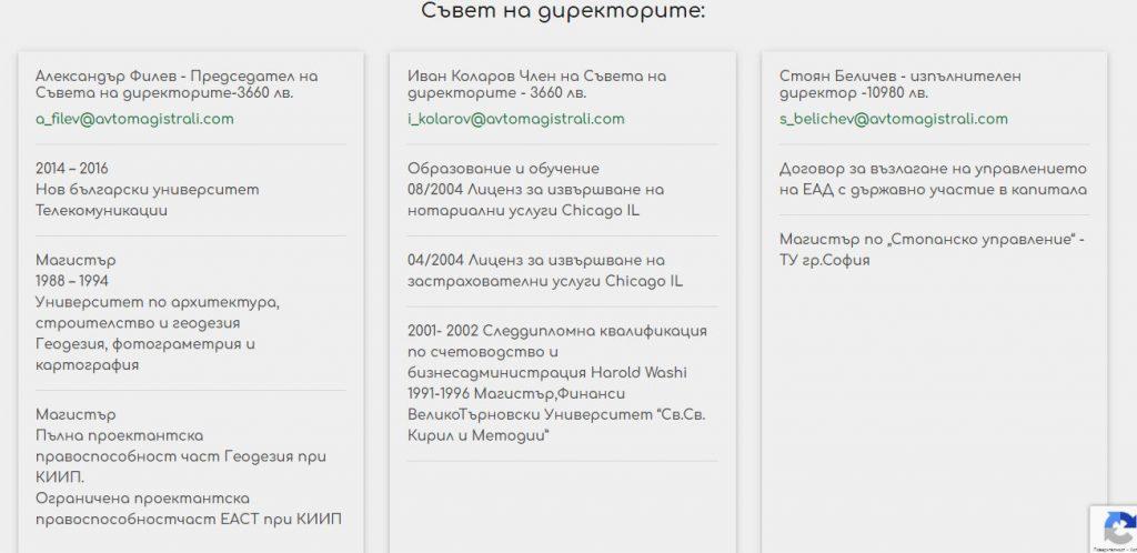 Публикуването на заплатите на ръководството е законово задължение на държавните предприятия, но в практиката този член от нормативната уредба не се спазва. „Автомагистрали“ АД става първото дружество, което прави публични възнагражденията на шефовете си.