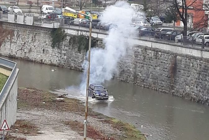 „Един луд в река Янтра“ – така е озаглавена снимка на която се вижда лек автомобил във водния басейн. Фотосът е публикуван в социалната мрежа Фейсбук.