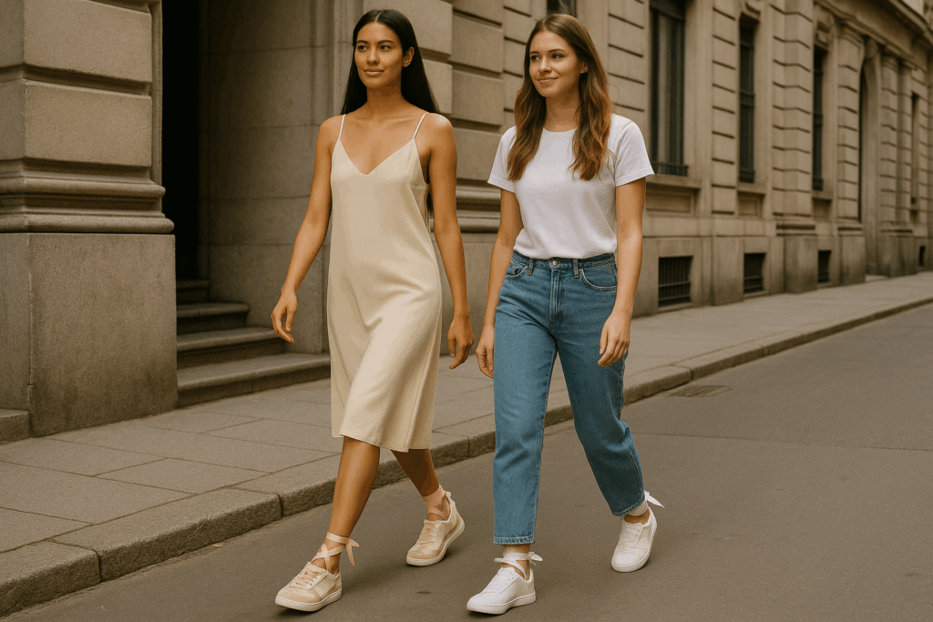 Лятото на 2025 г. носи със себе си нова модна сензация в света на обувките — балетните сникърси, известни още като „sneakerinas“. Тези хибридни модели съчетават елегантността на балетните пантофки с удобството и функционалността на спортните обувки, превръщайки се в задължителен аксесоар за всяка модна ентусиастка.