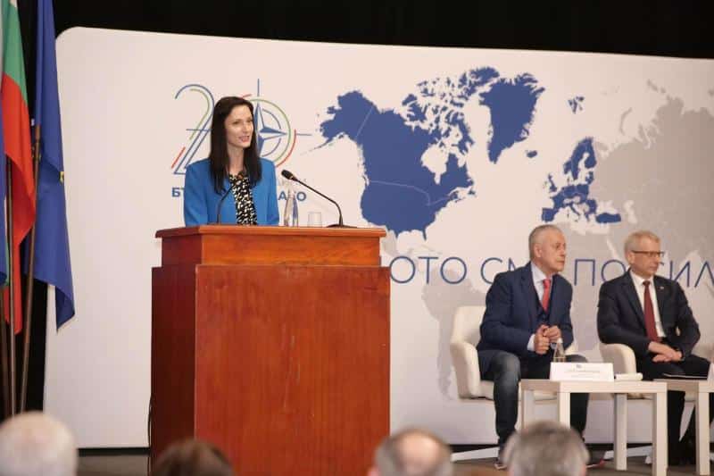 Мария Габриел подчерта в обръщението си значението на НАТО като общност на споделени демократични ценности и принципи и отбеляза успехите на България в рамките на алианса през последните две десетилетия.