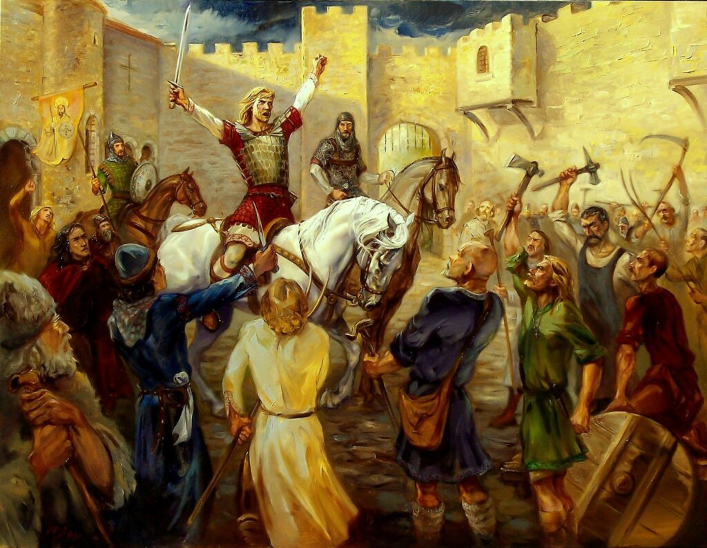Надарен физически и духовно, чрез своето дар слово Ивайло увлича хората със своето красноречие. При всички случаи очевидно е, че българското общество просто е очаквало една „силна ръка“, която да го поведе в бой срещу тормозещите го нашественици. След разгрома на татарите се случва това, което се случва в Средновековието в такива случаи — Ивайло е вдигнат на щит от бойците и командирите на армията си и е провъзгласен за български цар.“
