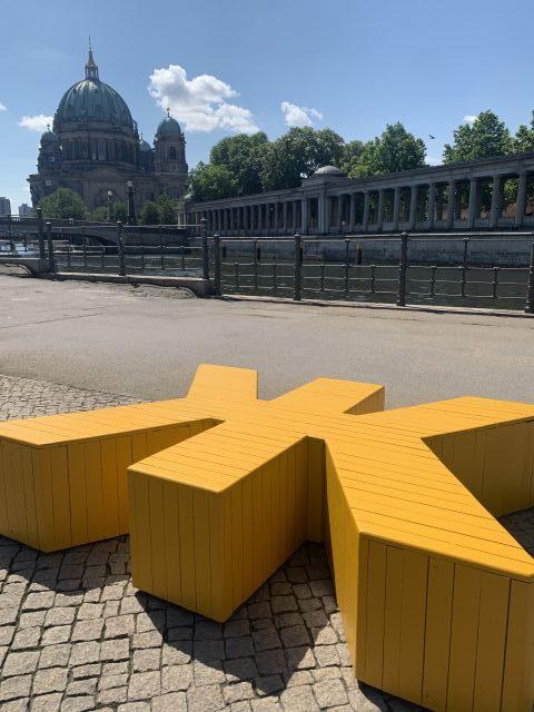 Българските букви посрещат вече два дни жителите и гостите на Берлин в едно от най-оживените места на брега на река Шпрее, в близост до Берлинската катедрала и Острова на музеите.