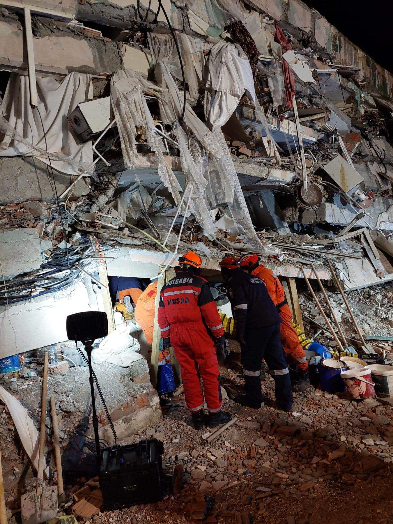 Същевременно след няколко часа неуморна работа екипът на НАДРБ, работещ в Кахраманмараш, е локализирал петима оцелели. Действията по изваждането на затрупаните хора продължават и в момента.