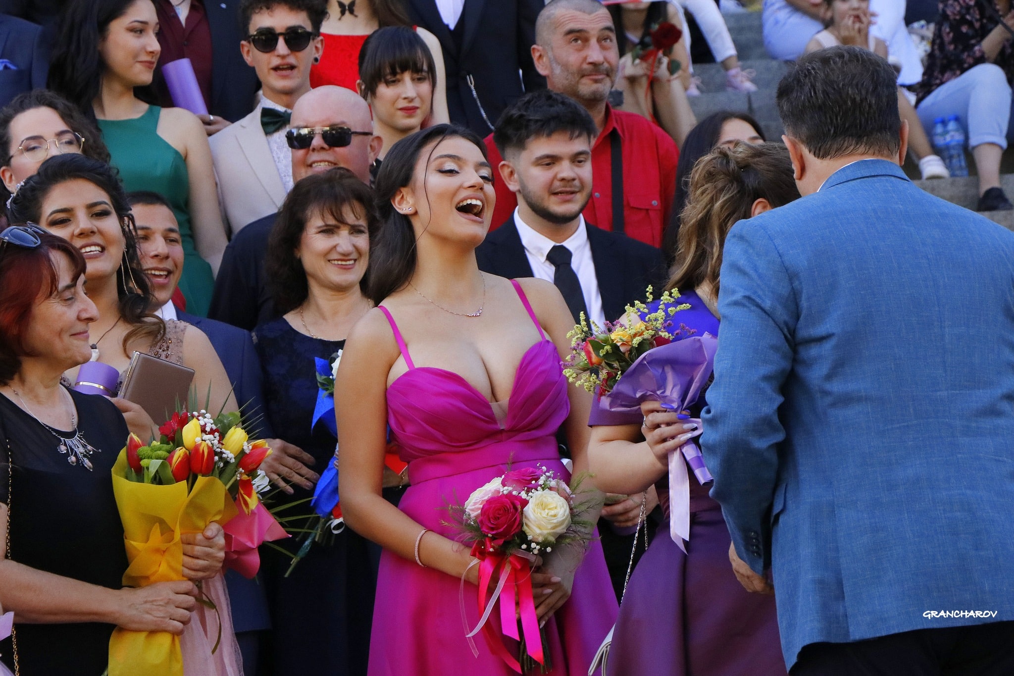 Снощи своите мигове слава получиха абитуриентите от ПМГ „Васил Друмев“, Частна професионална гимназия – Американски колеж „Аркус“, Спортно училище „Георги Живков“, Професионална гимназия по електроника „А.С.Попов“, Средно училище „Вела Благоева“ и Профилирана хуманитарна гимназия „Св. св. Кирил и Методий“.
