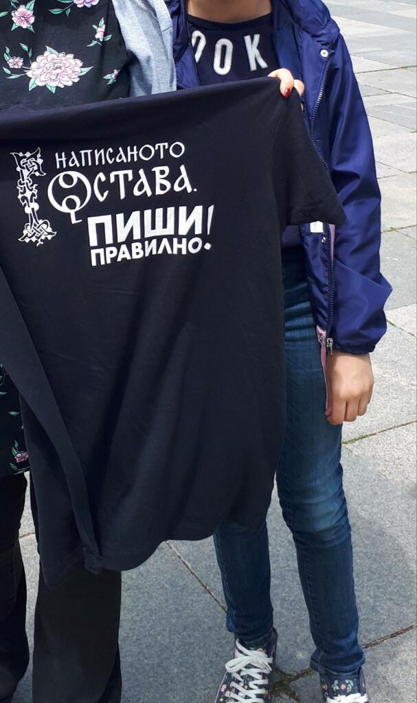 В продължение на четири часа всички минувачи имаха възможност да напишат кратък текст и получаваха от организаторите тениски в различни цветове и стикери с мотото на кампанията „Написаното остава. Пиши правилно!”