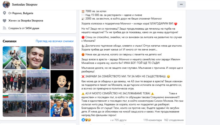 Бащата на 24-годишния Момчил Георгиев – Светослав Георгиев сподели в социалната мрежа Facebook публикация, свързана с журналиста на свободна практика Симон Милков. Препубликуваме я без редакторска намеса: