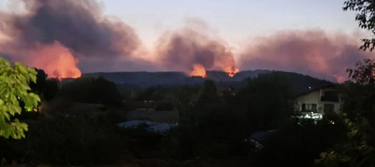 Запалила се е гориста местност, но към момента горят гори, ниви и лозови масиви.