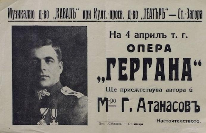 Диригент е Атанас Ковачев, режисьор – Мара Шопова, хормайстор – Златан Станчев. В главните роли: Гергана – Ничка Хаджимитева (Баталова), Никола – Георги Баталов, Христина – Радка Профирова, Дядо Недялко – Петър Тотев, Селим бей -Теню Велев, Мухтар ага – Стефан Георгиев, Баба Цона – Христина Георгиева. Събитието поставя и началото на първата постоянно действаща извънстолична опера в страната.