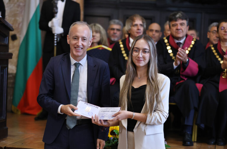 „Всяка година, когато връчвам националните дипломи, аз питам всеки един абитуриент къде ще продължи. За мен е голяма радост да чувам, че все повече ще останат в България, а много от тях избират Софийския университет“, каза министърът.
