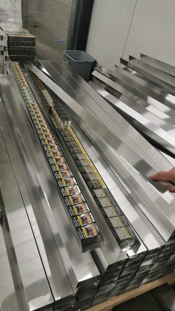 Извършена е физическа проверка, при която митническите служители откриват, че кухините на металните профили са пълни с кутии с цигари. Установени са общо недекларирани 22 900 кутии (458 000 къса) цигари от две търговски марки, всички с чужд бандерол. Пазарната стойност на задържаните тютюневи изделия е 145 830 лева.